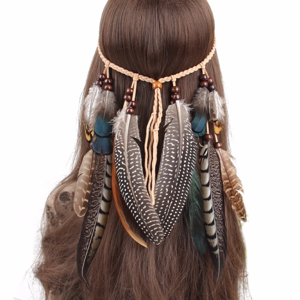 Ethnic Bohemian Festival Feather Headbands Hippie Headdress Hair Accessories Boho Tribal Feather Headdress Tribal Gypsy Jewelry