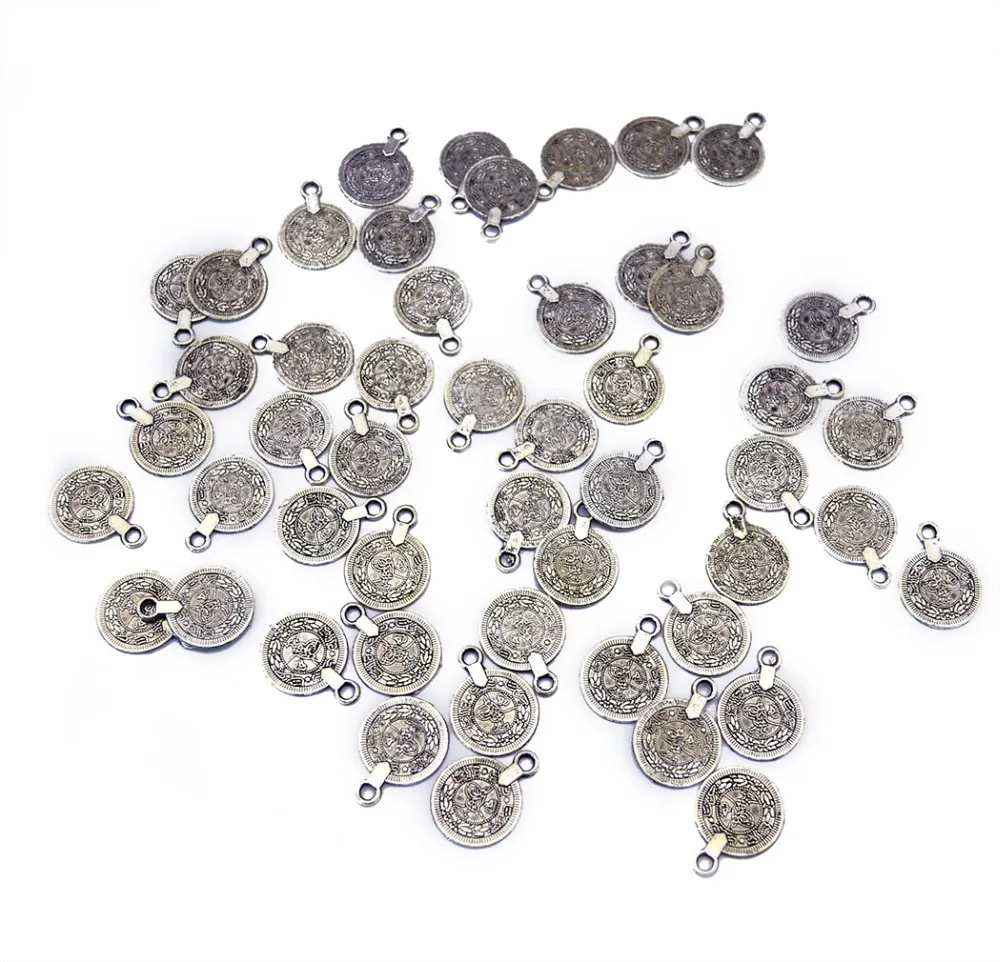 Gypsy Bohemain Silver Color Gold Coin Charms Pendant DIY cigana Necklace Earring Jewelry Finding Coin Tribal Making Accessories