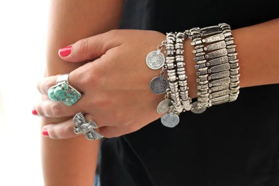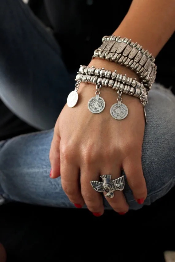 Gypsy Bohemian Coin Bracelets for Women Metal Vintage Flower Statement Bracelets Festival Turkish Beach Jewelry Tribal Ethnic