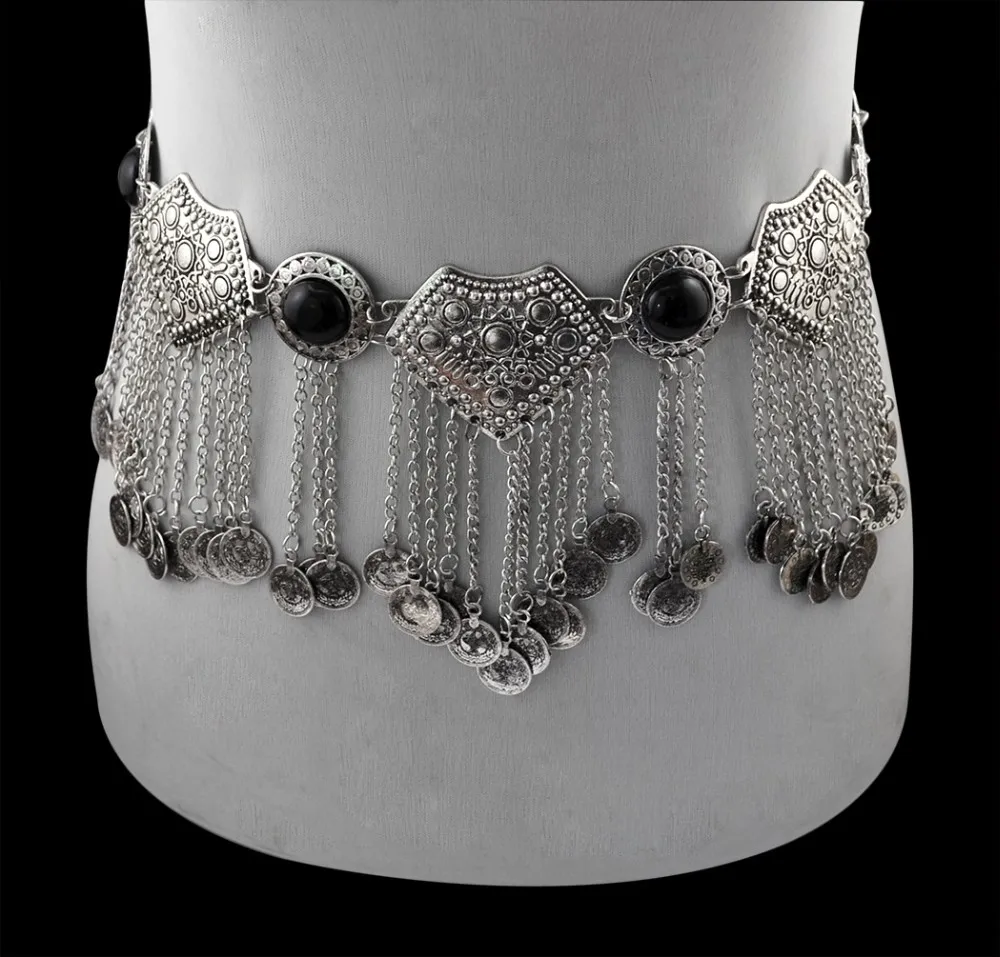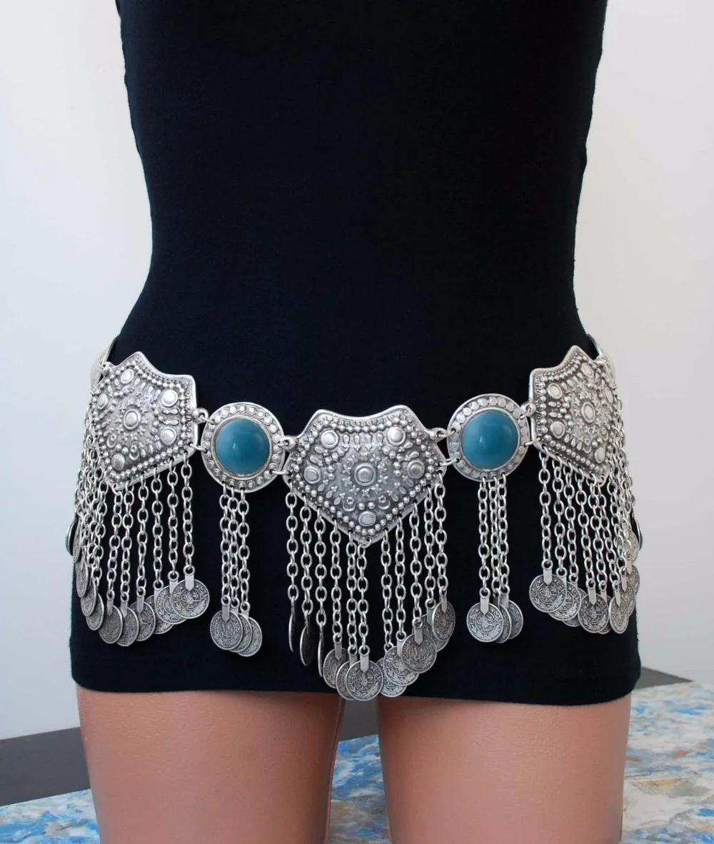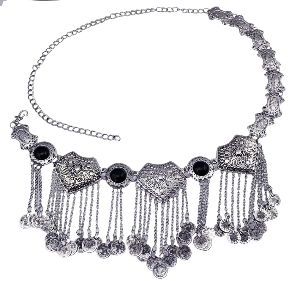 Gypsy Metal Hippie Boho Flower Turkish Bohemian Shimmy Dress Belt Belly Dance Waist Chain Coins Sexy Body Afghan Indian Jewelry