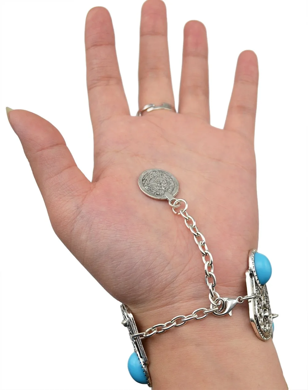 Vintage Finger Bracelet Pulseras Bohemian Gypsy Beach Charm Turkish Coin Pendant Hand Chain Blue Stone Slave Bracelet Bangle