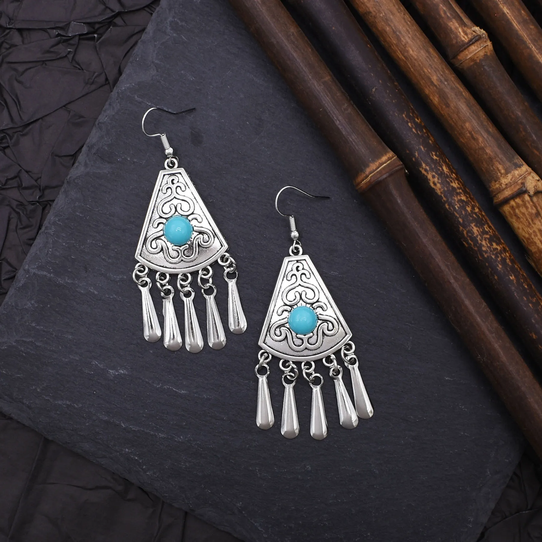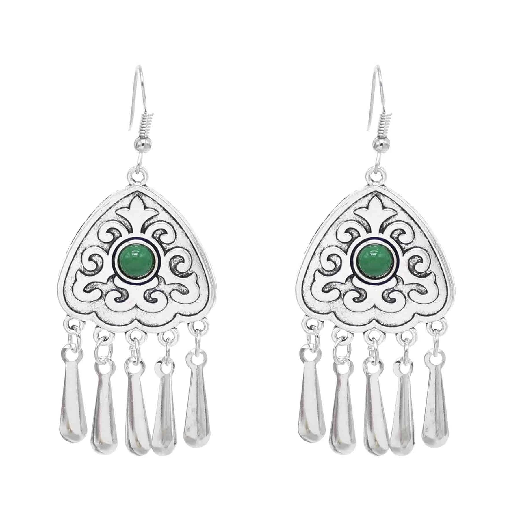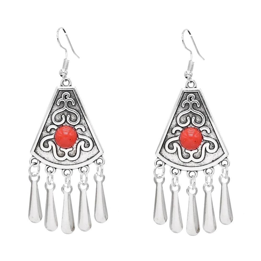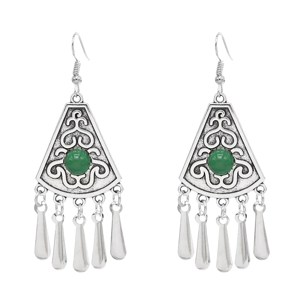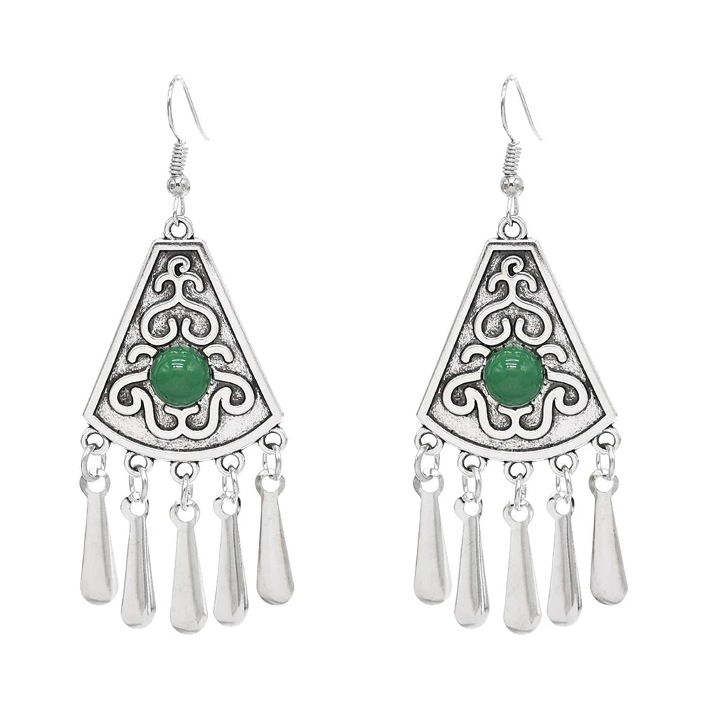 Indian Vintage Oxidized Silver Color Metal Drop Earrings for Women Boho Blue Black Stone Hanging Earrings Arab Ethnic Jewelry