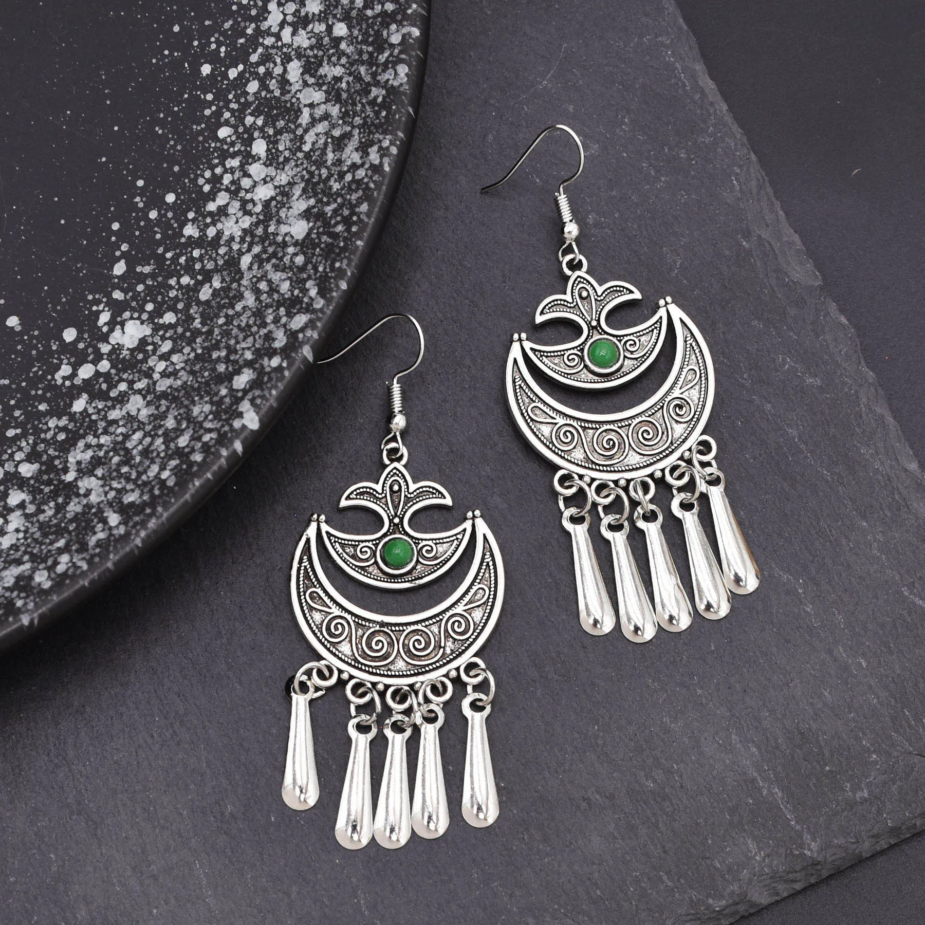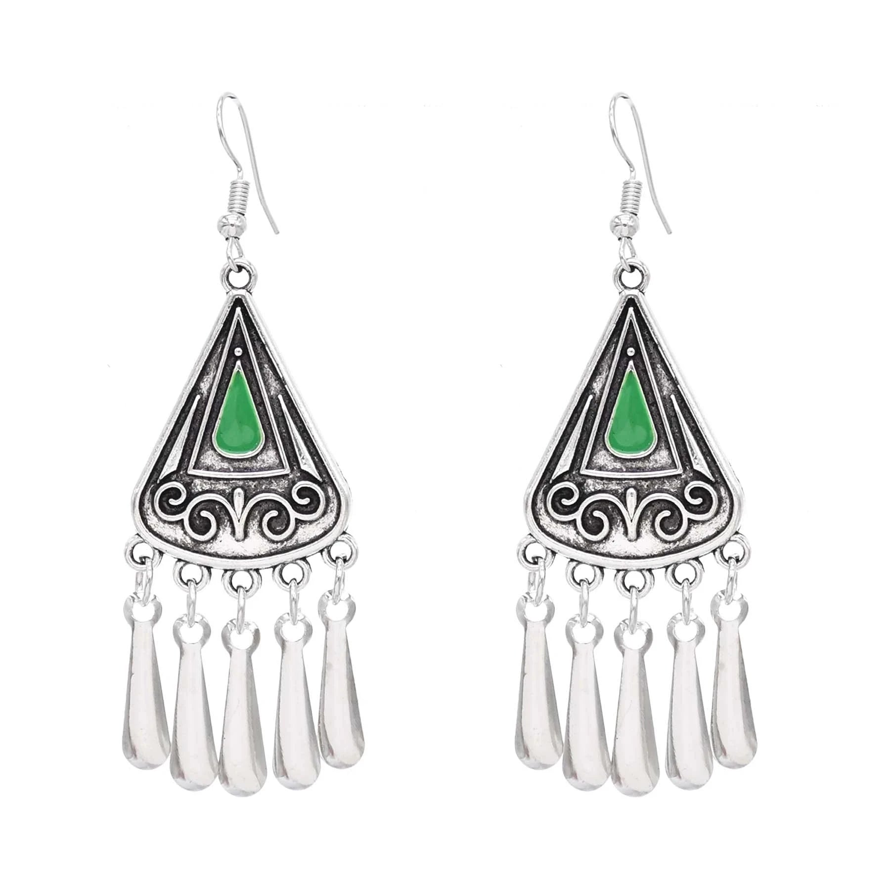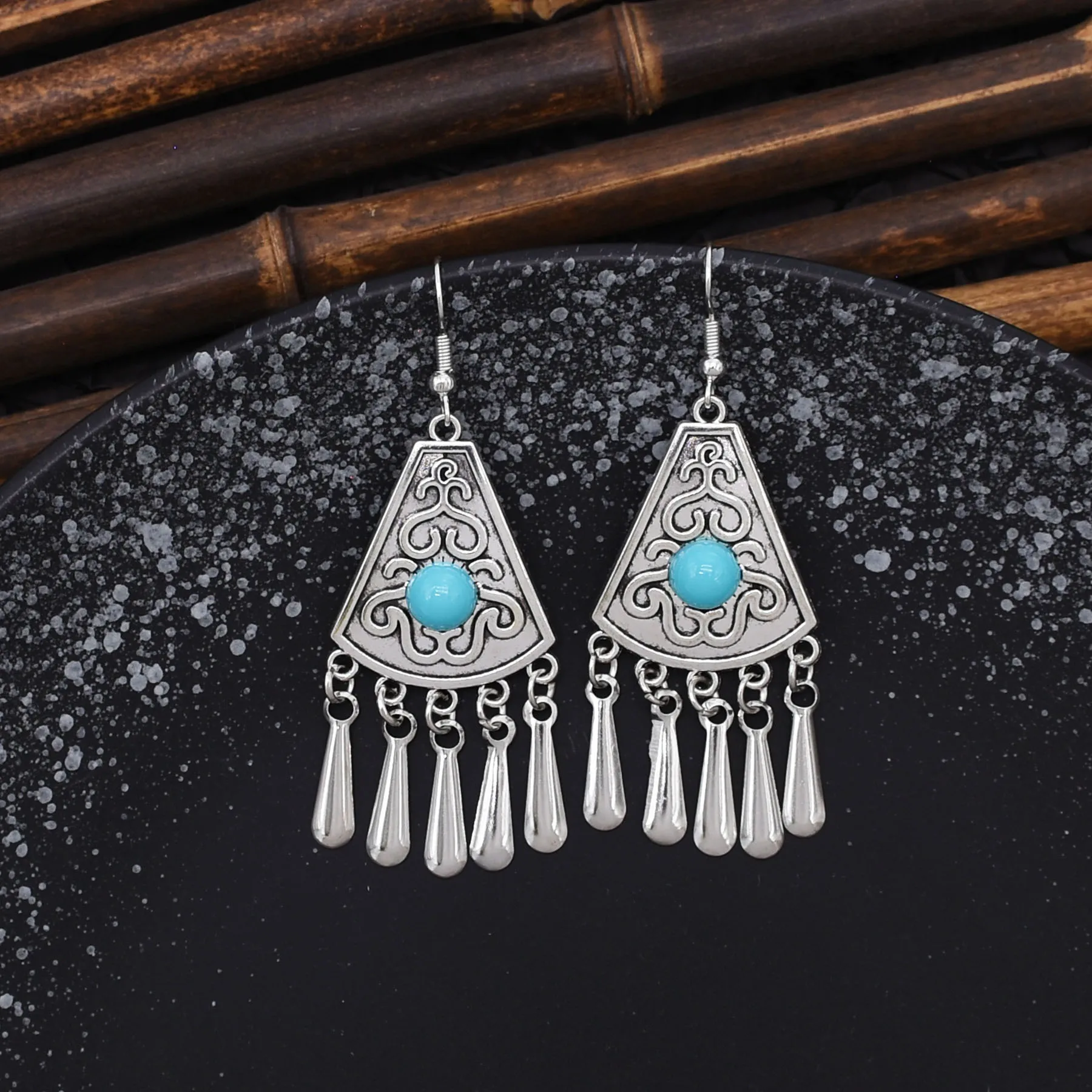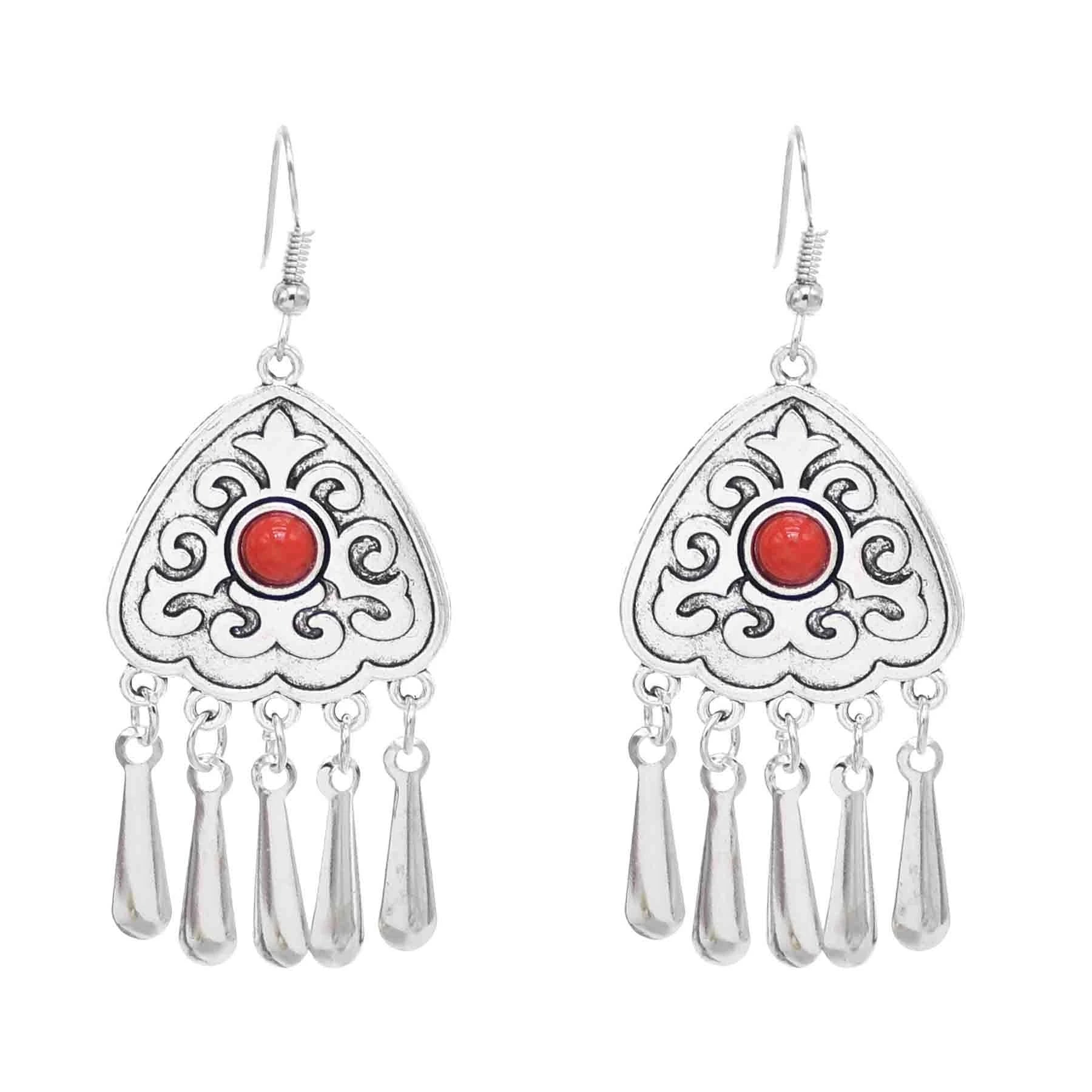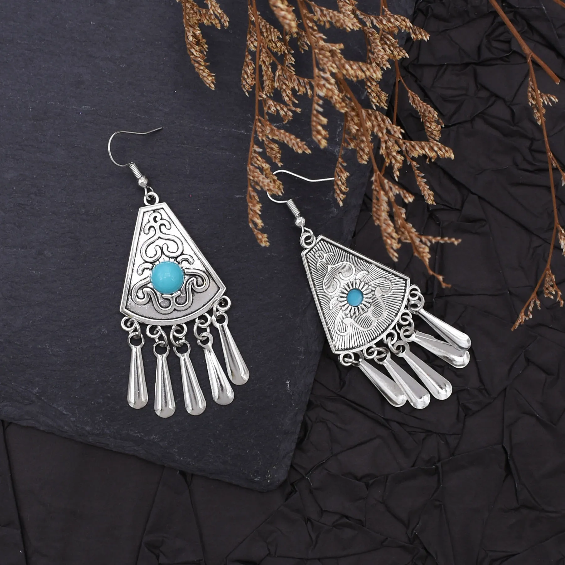 Indian Vintage Oxidized Silver Color Metal Drop Earrings for Women Boho Blue Black Stone Hanging Earrings Arab Ethnic Jewelry