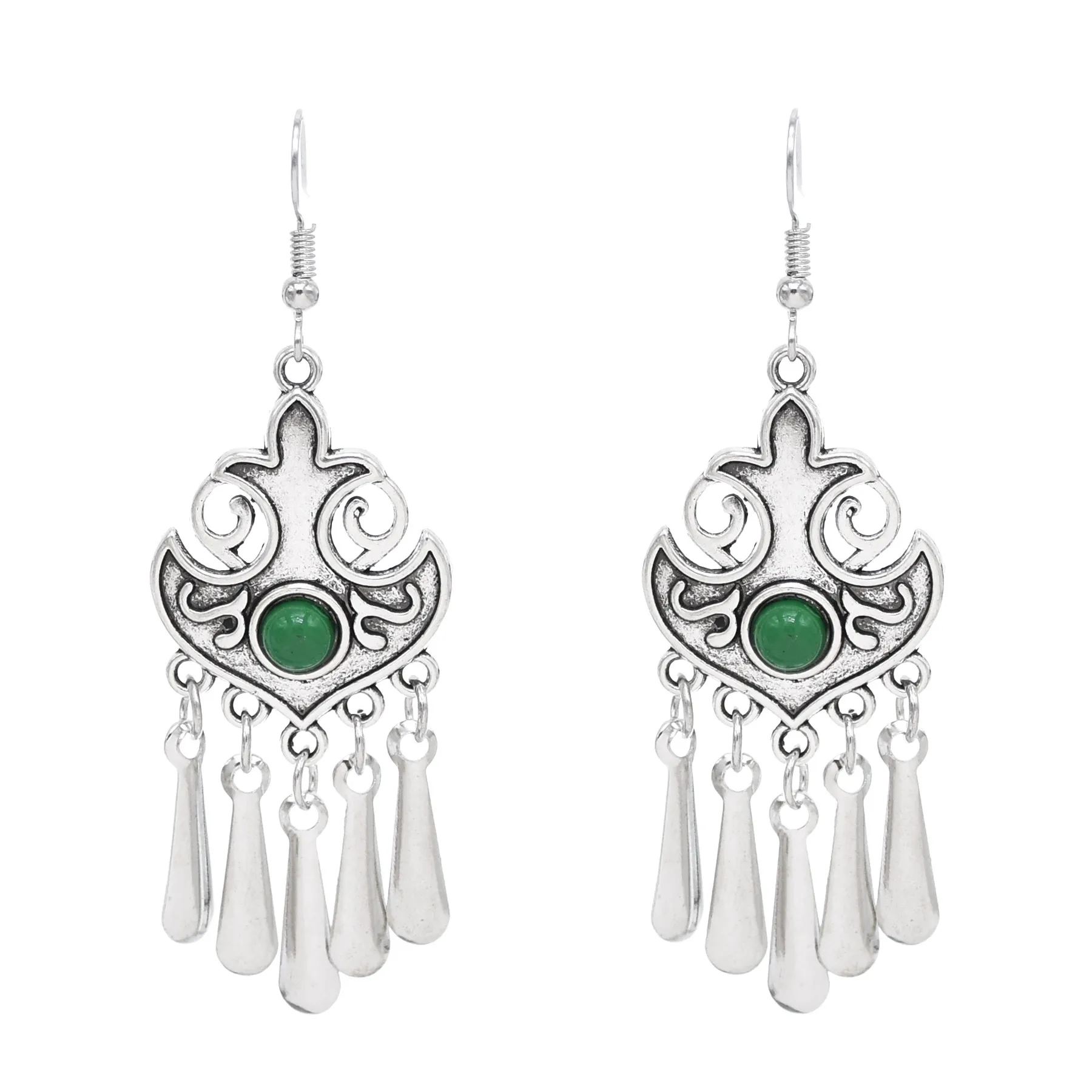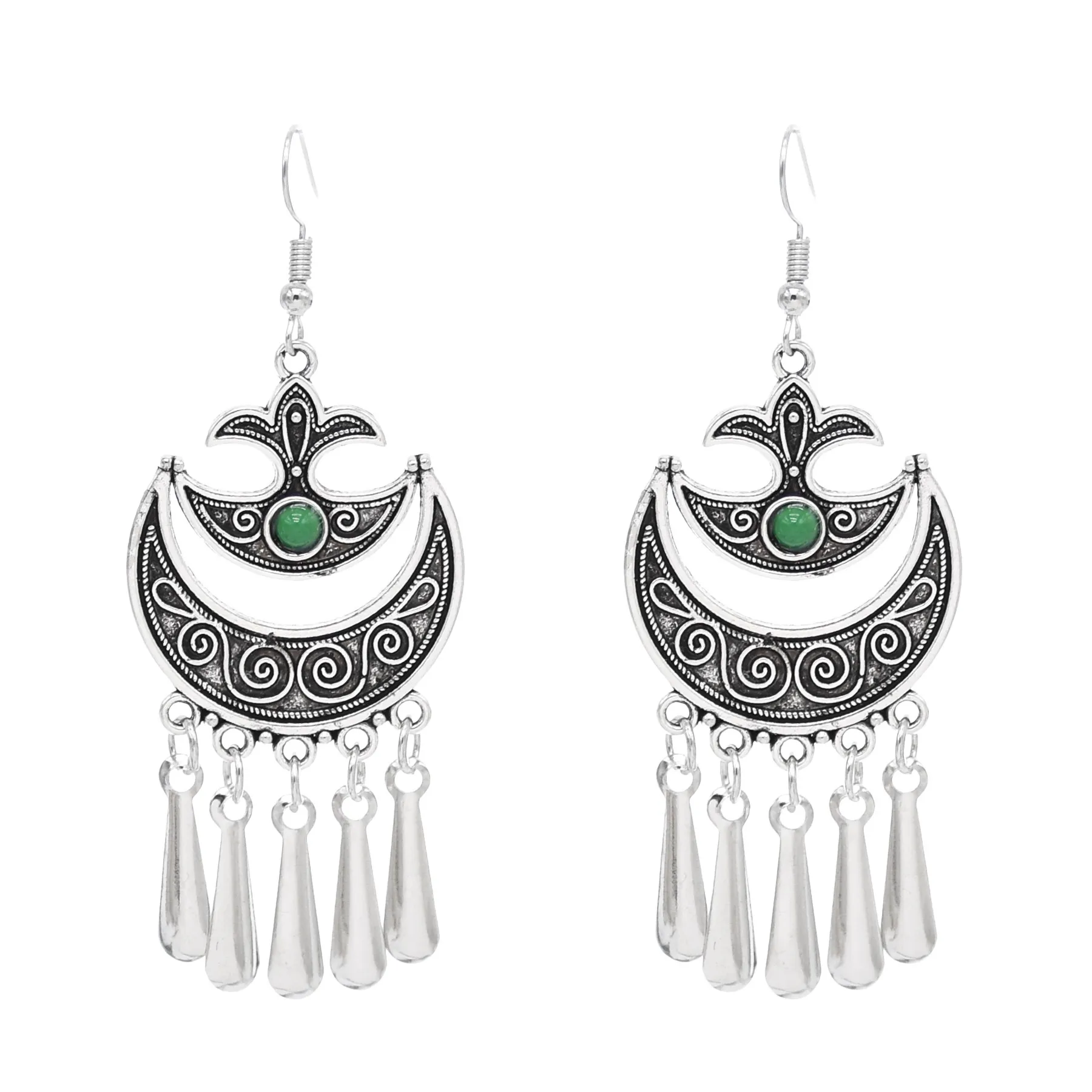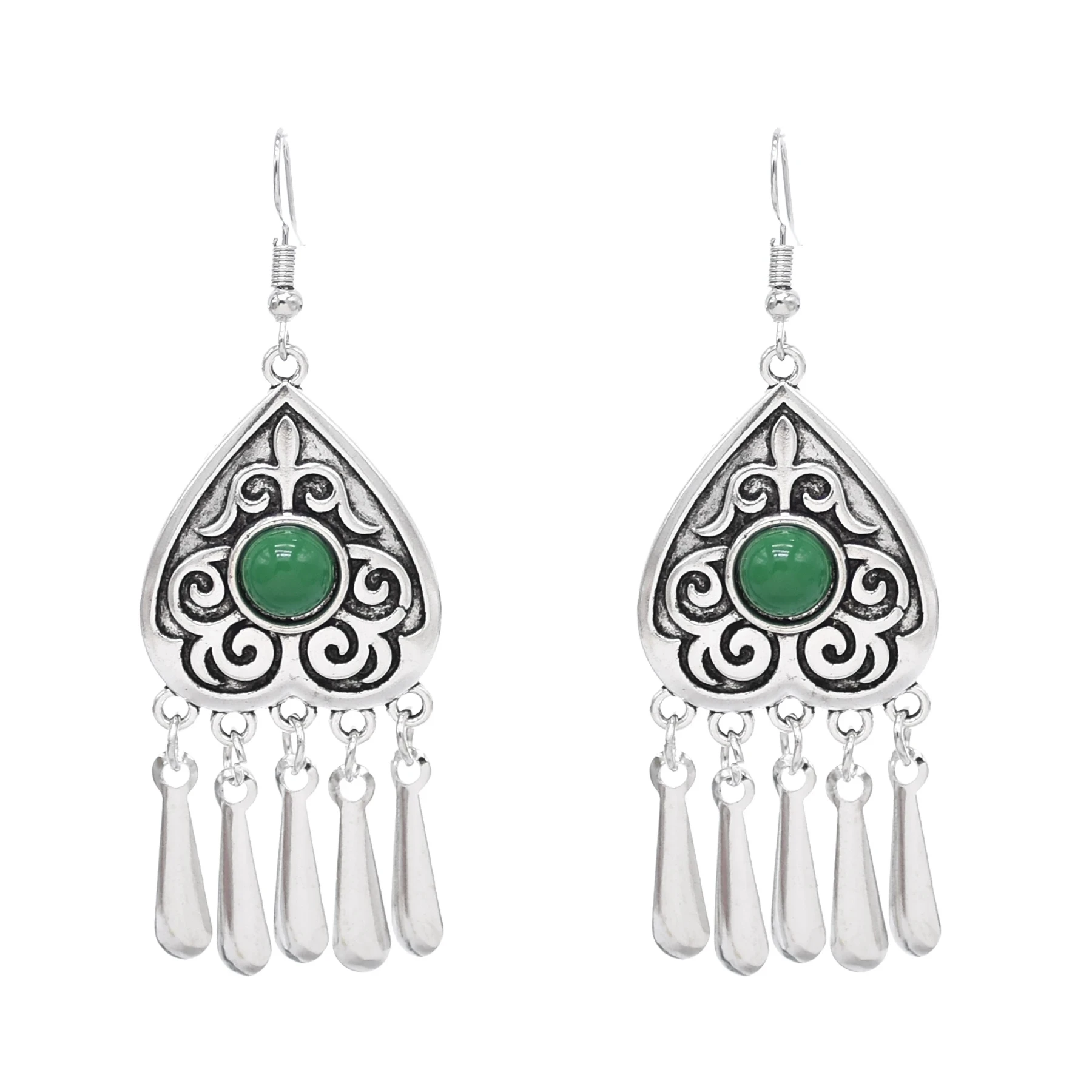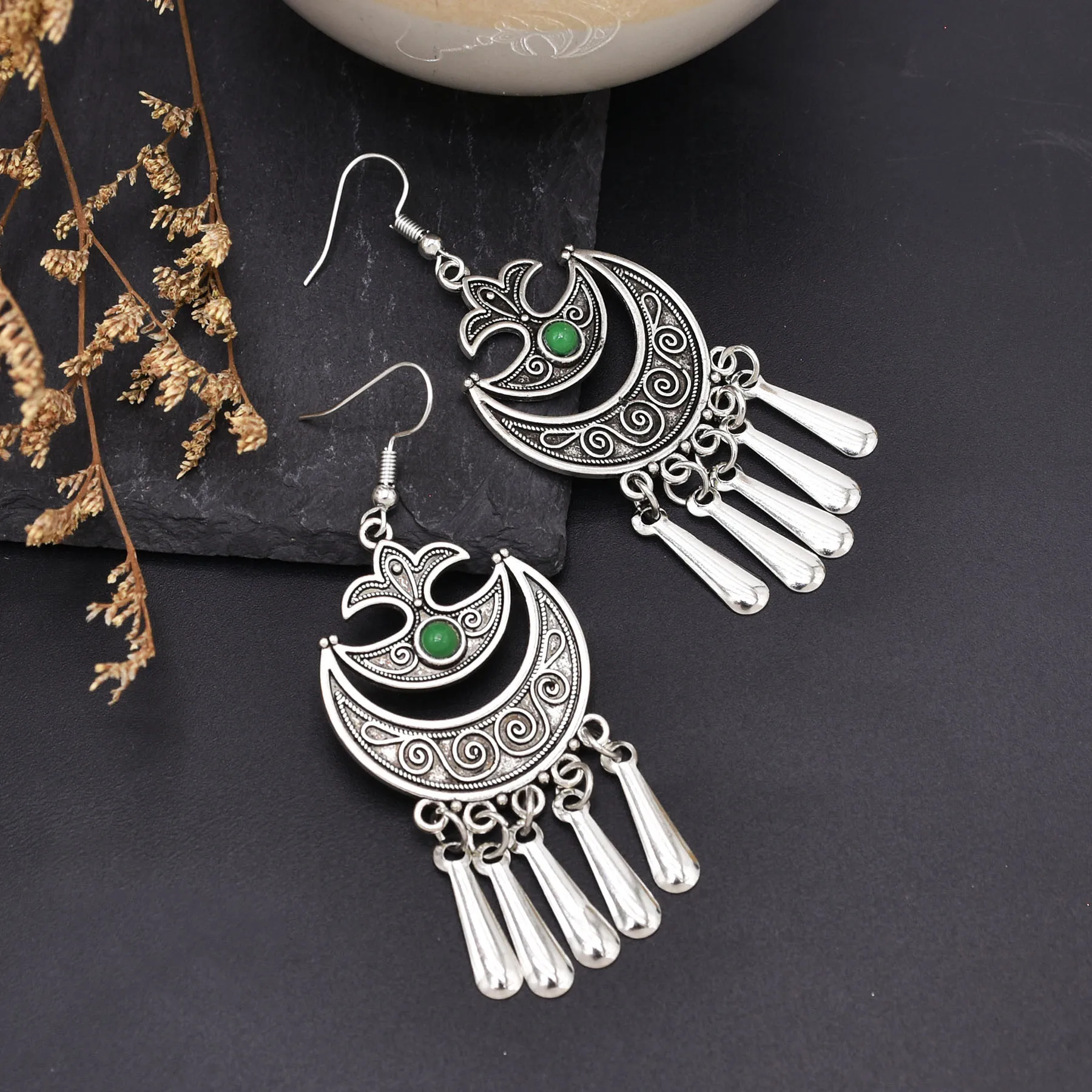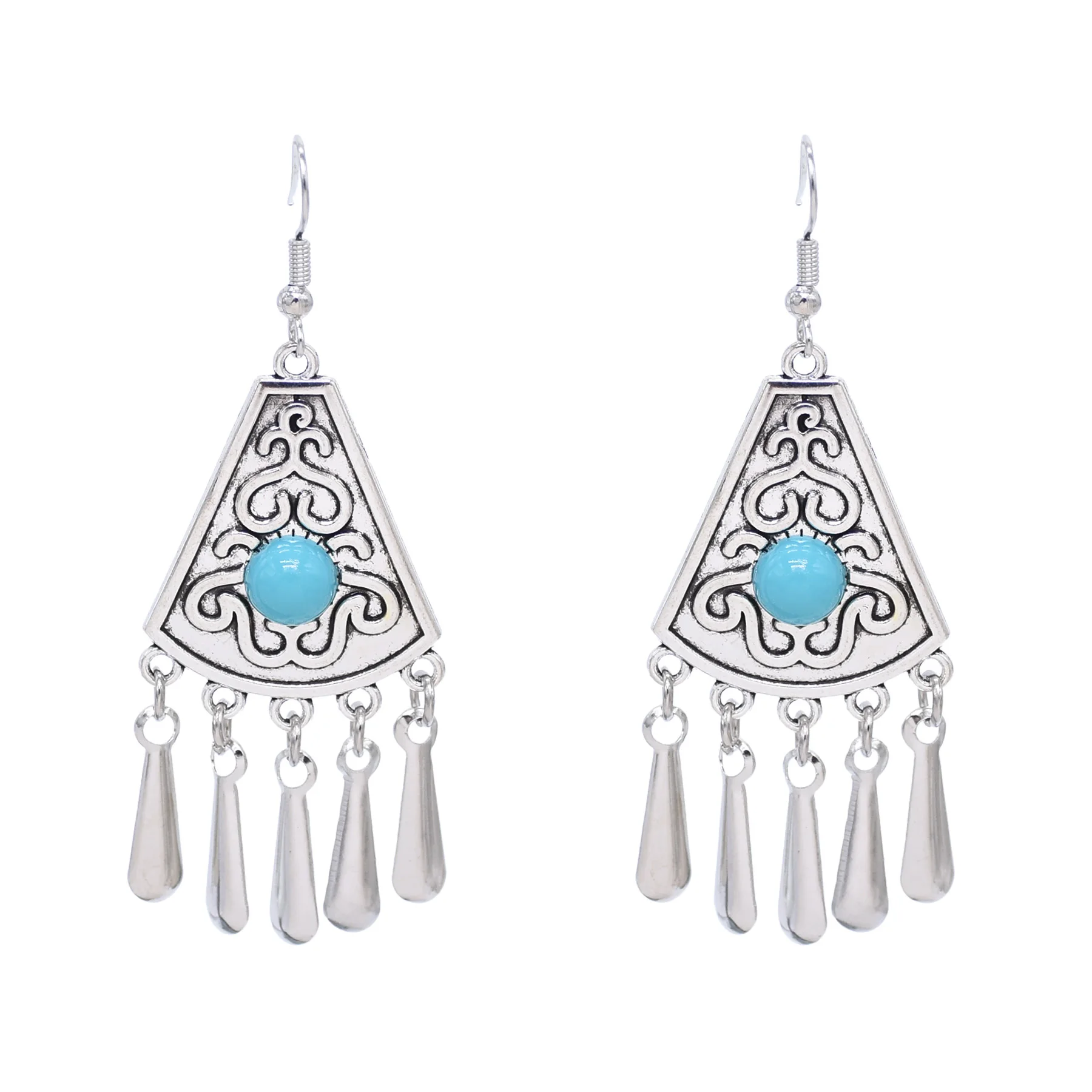 Indian Vintage Oxidized Silver Color Metal Drop Earrings for Women Boho Blue Black Stone Hanging Earrings Arab Ethnic Jewelry