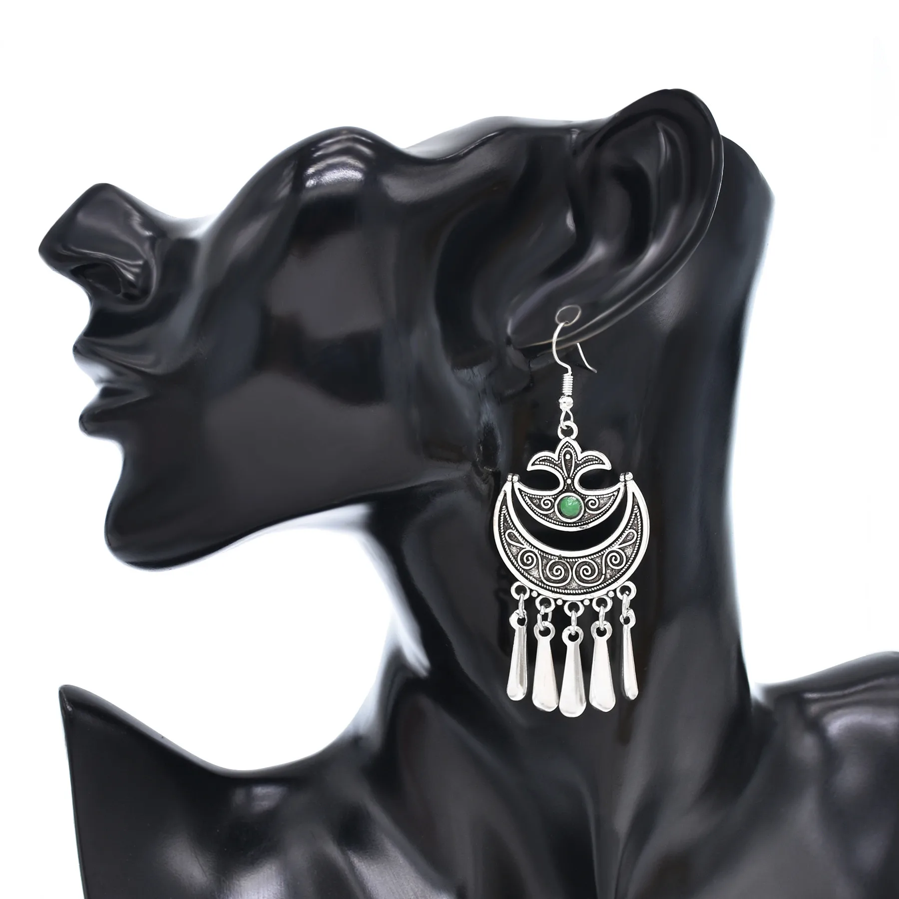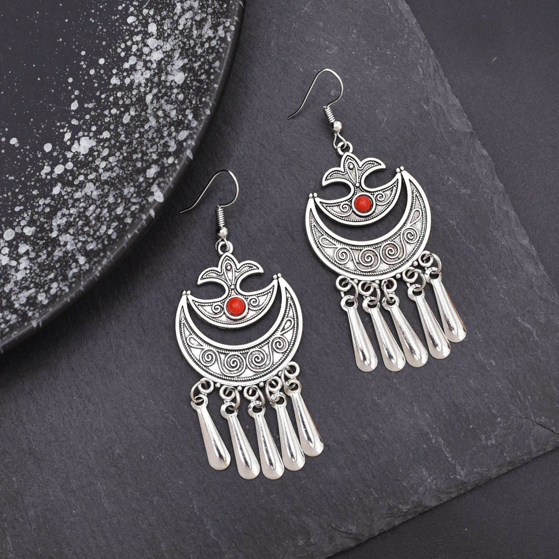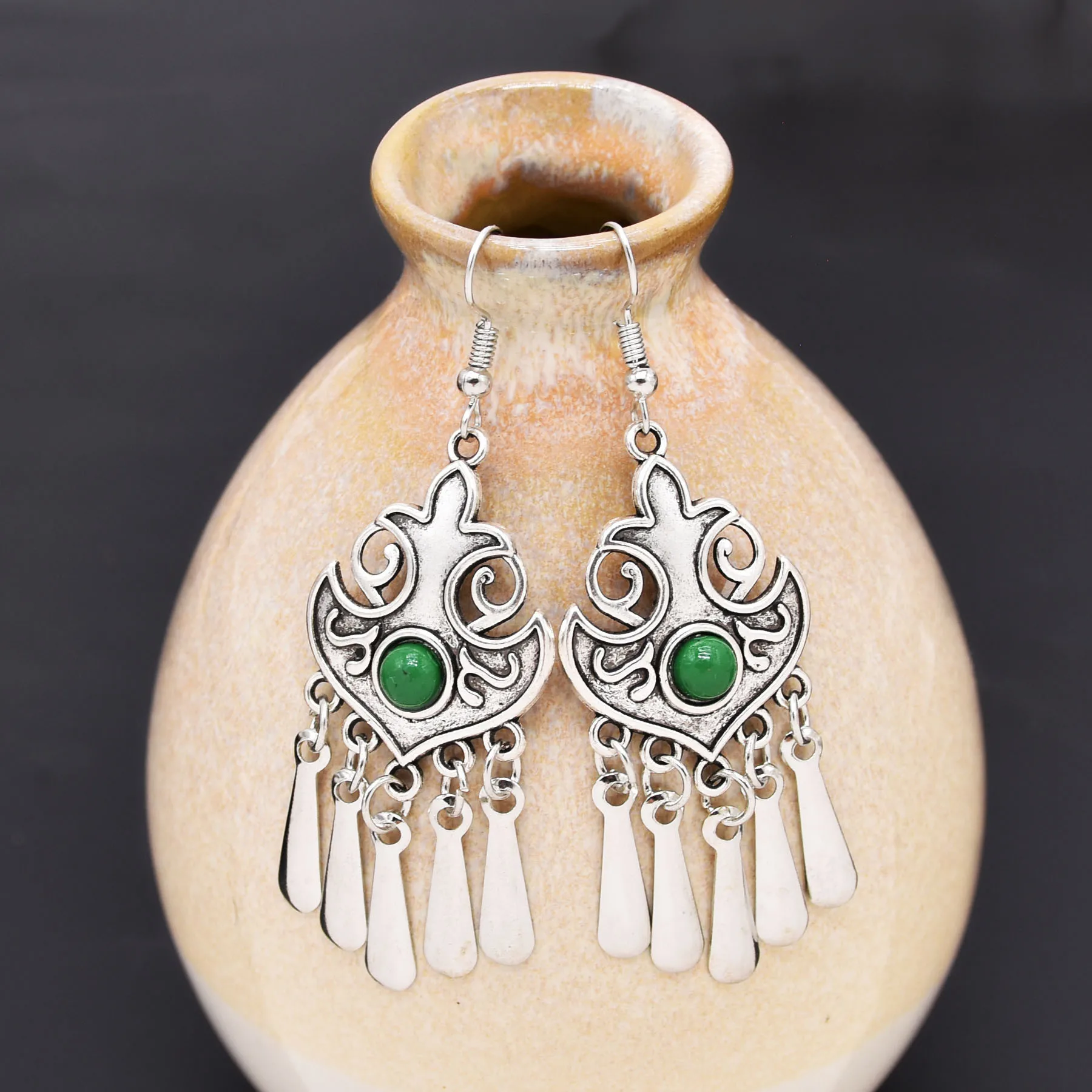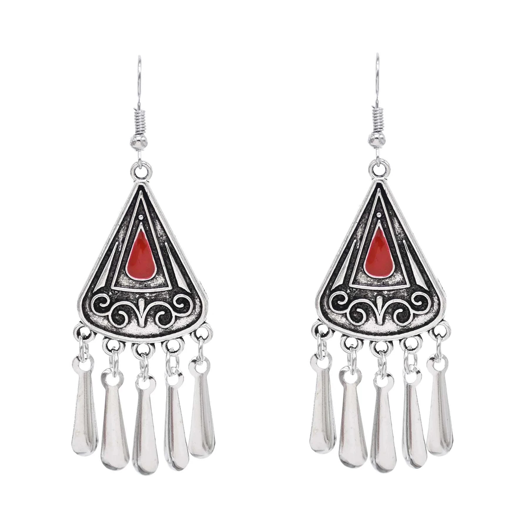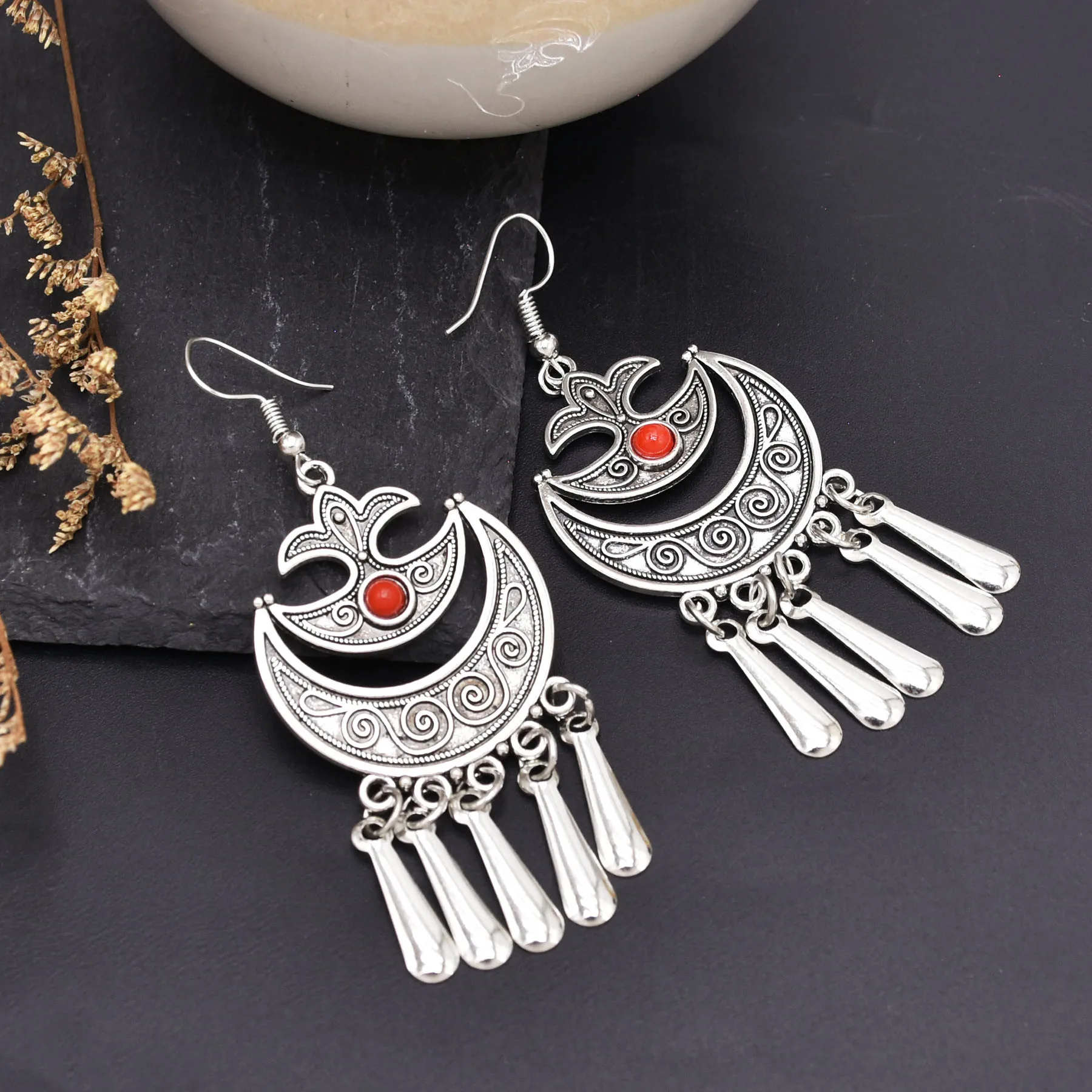 Indian Vintage Oxidized Silver Color Metal Drop Earrings for Women Boho Blue Black Stone Hanging Earrings Arab Ethnic Jewelry