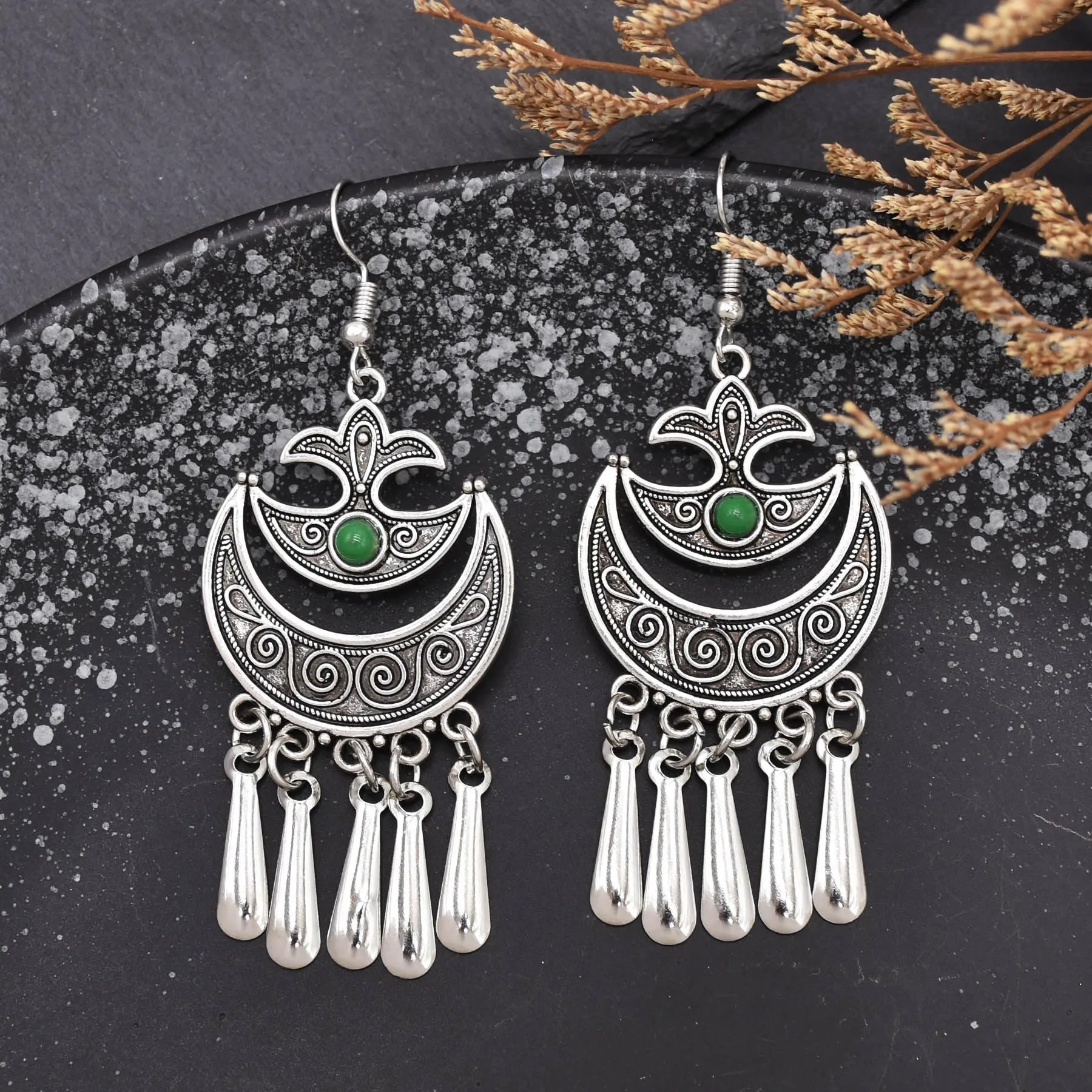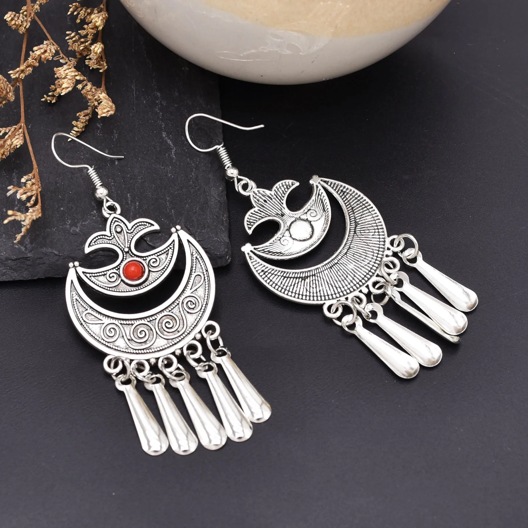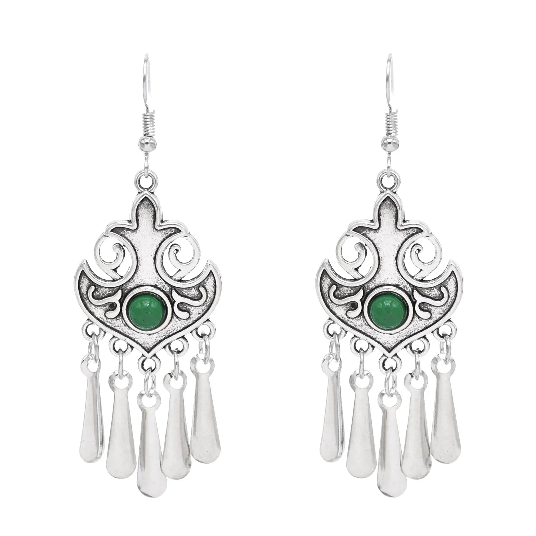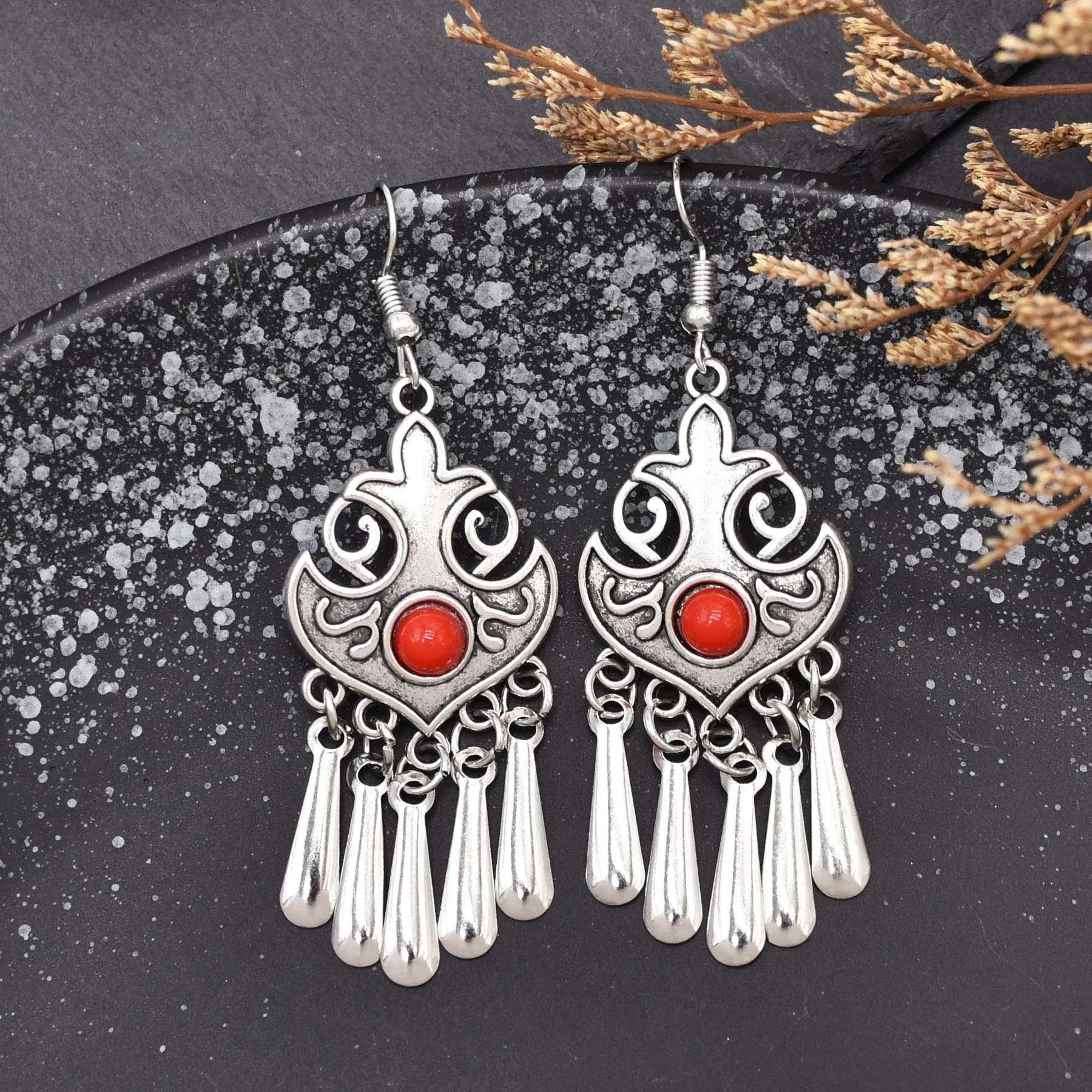Indian Vintage Oxidized Silver Color Metal Drop Earrings for Women Boho Blue Black Stone Hanging Earrings Arab Ethnic Jewelry