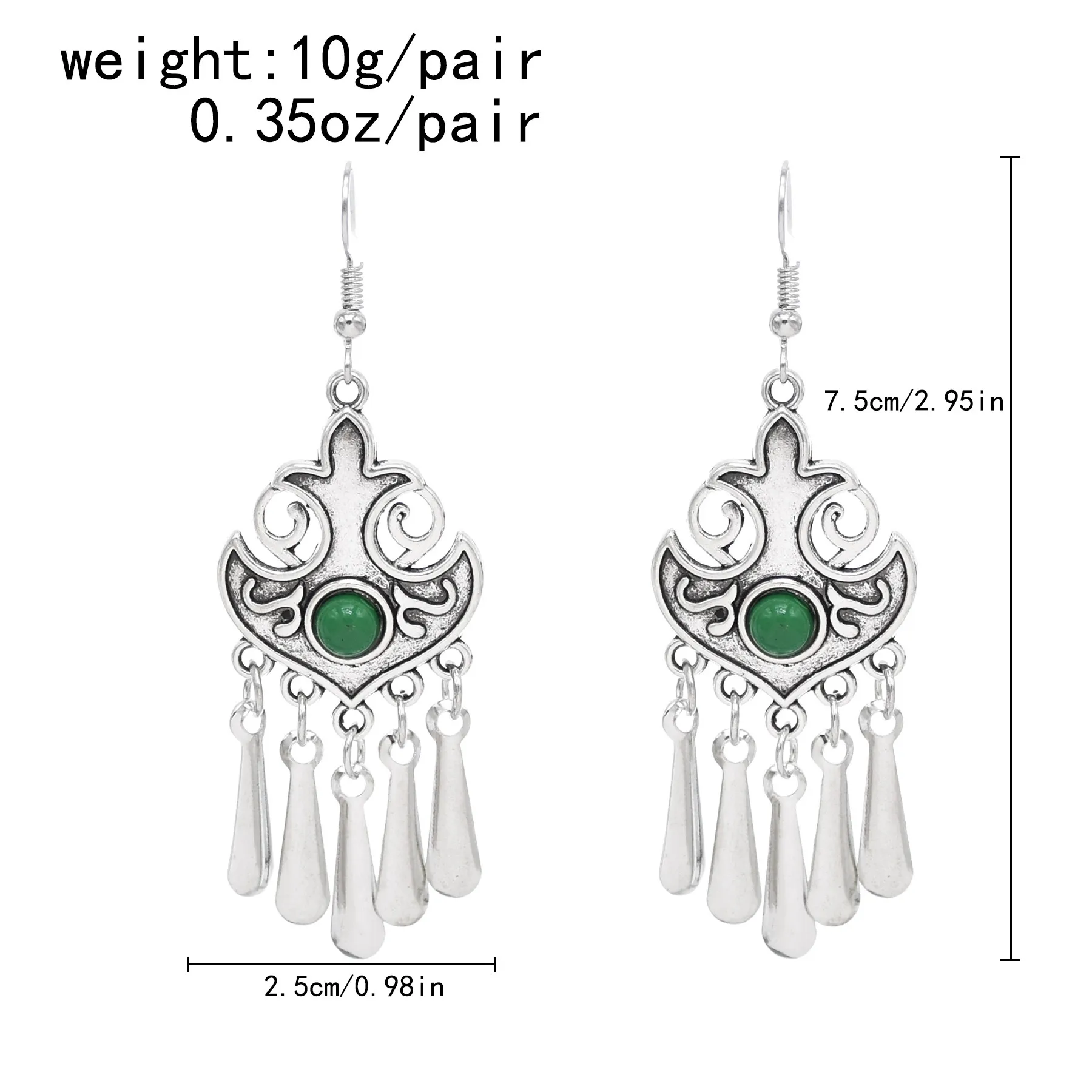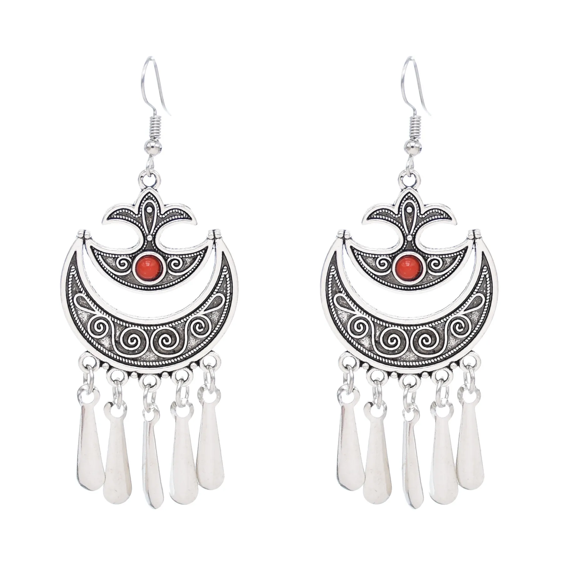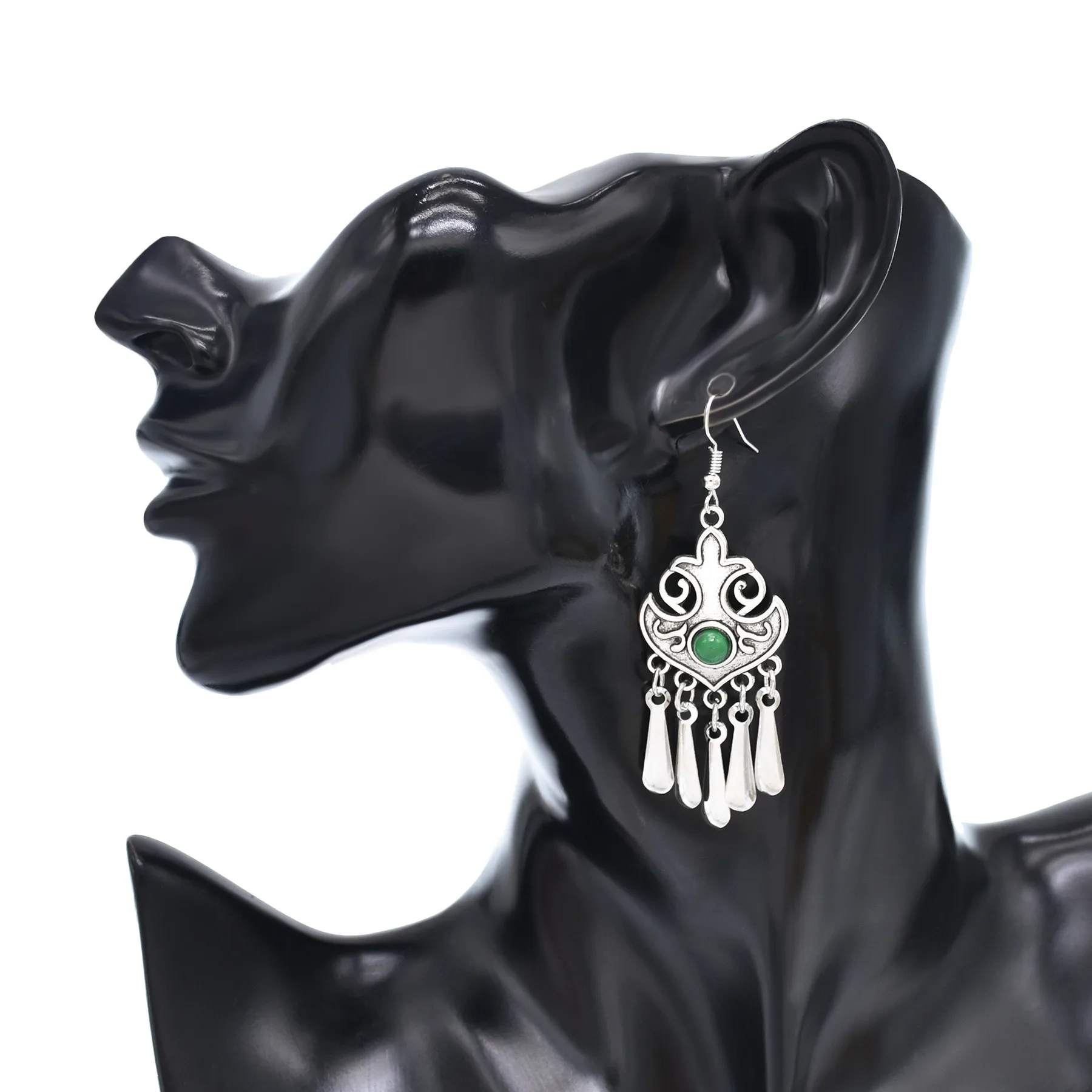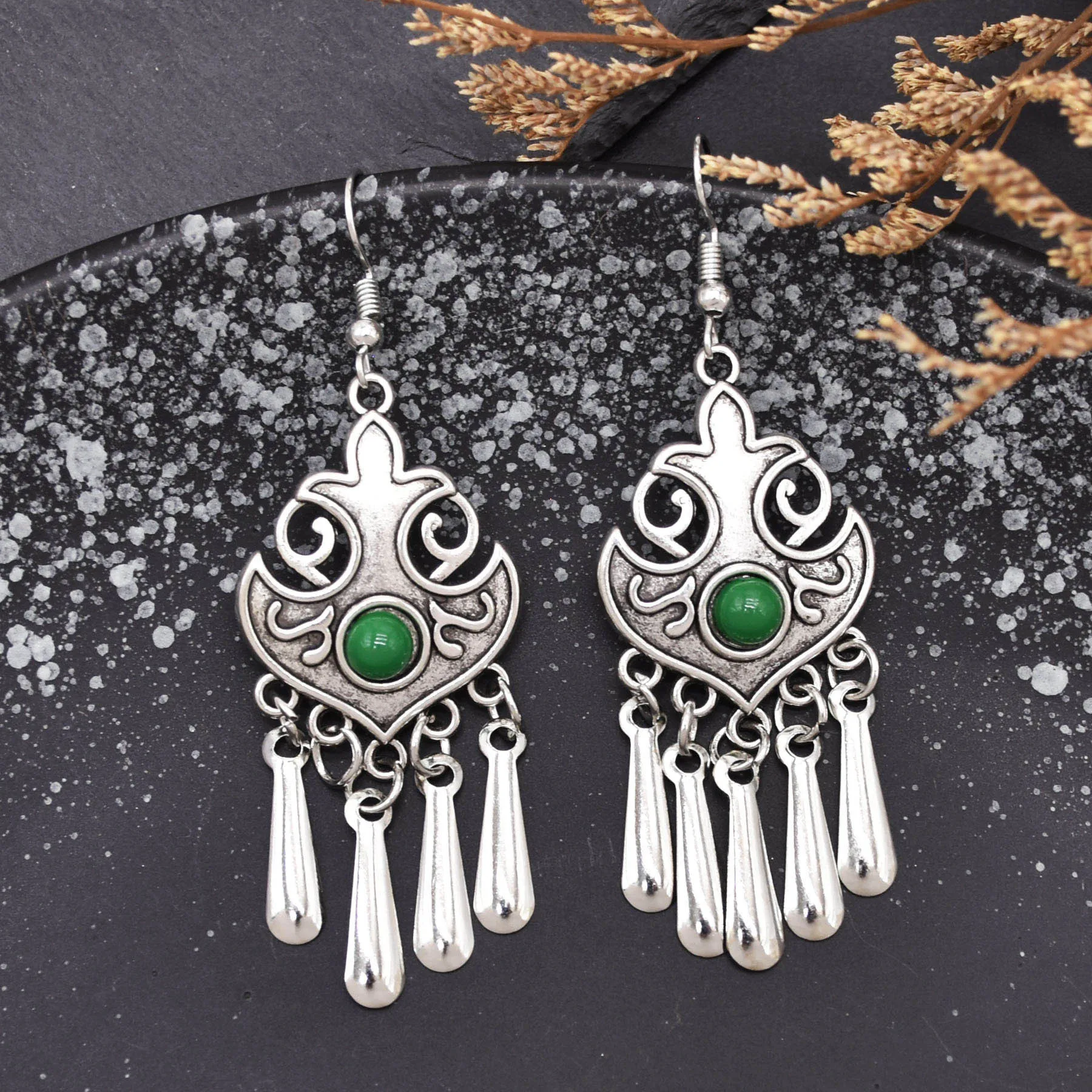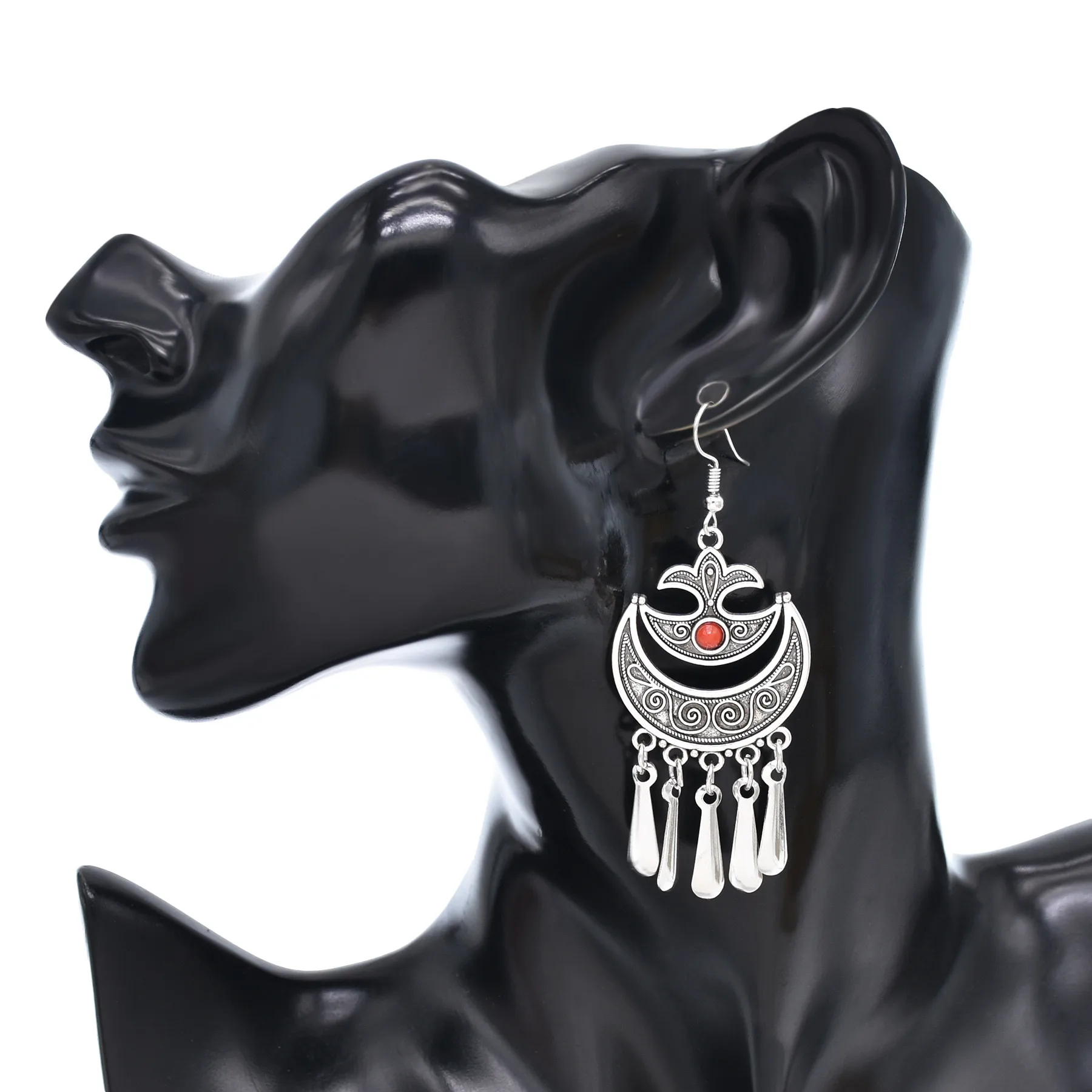 Indian Vintage Oxidized Silver Color Metal Drop Earrings for Women Boho Blue Black Stone Hanging Earrings Arab Ethnic Jewelry