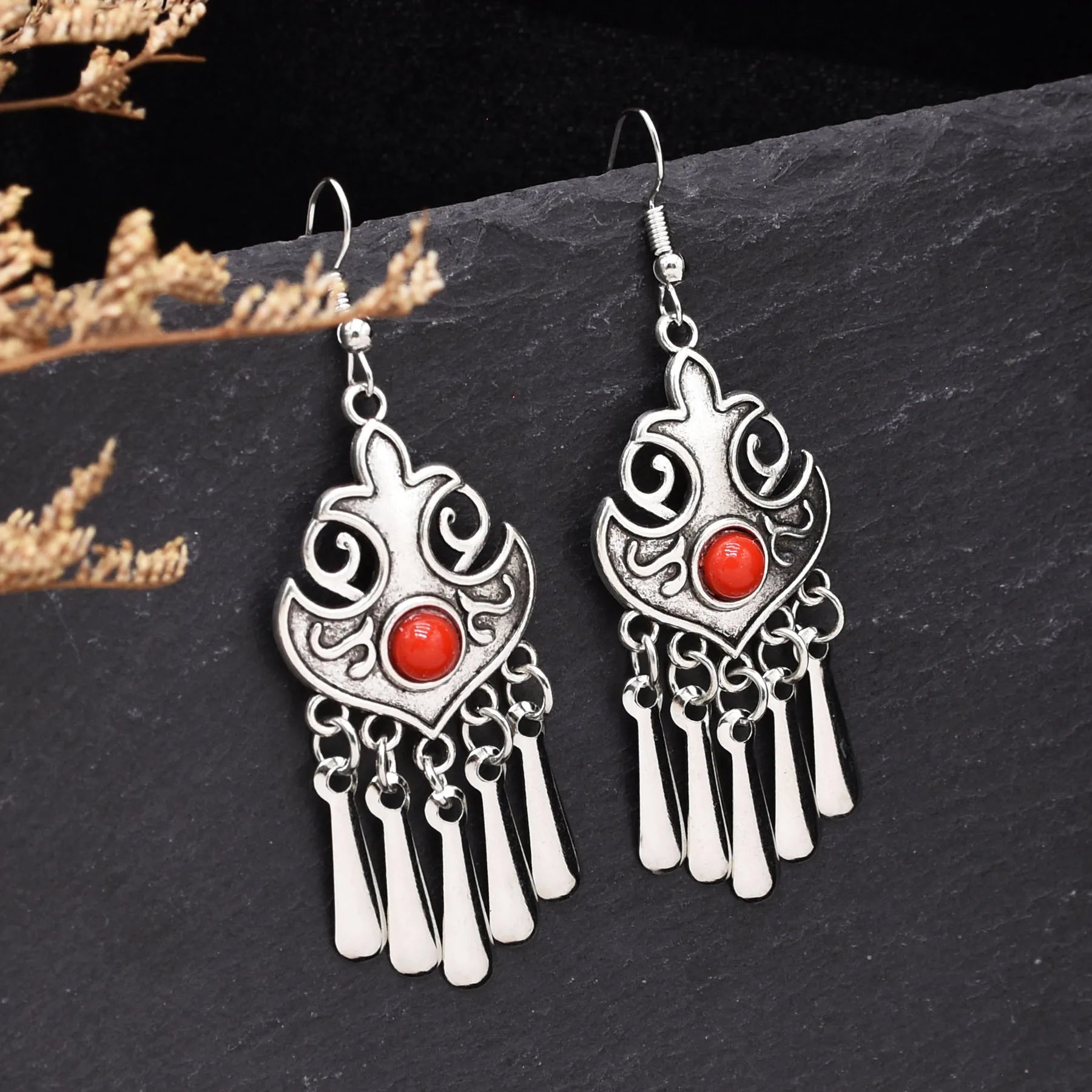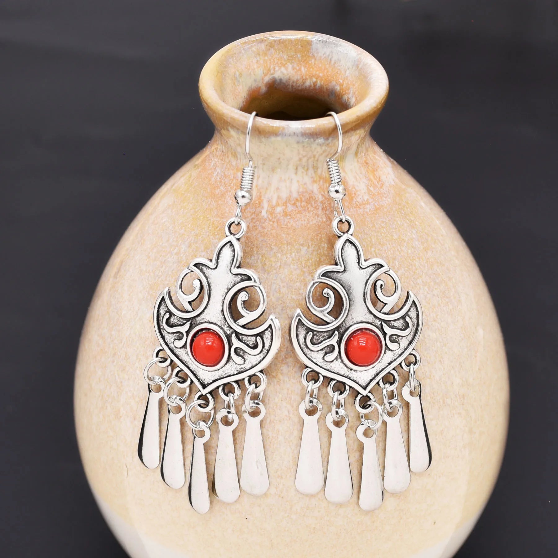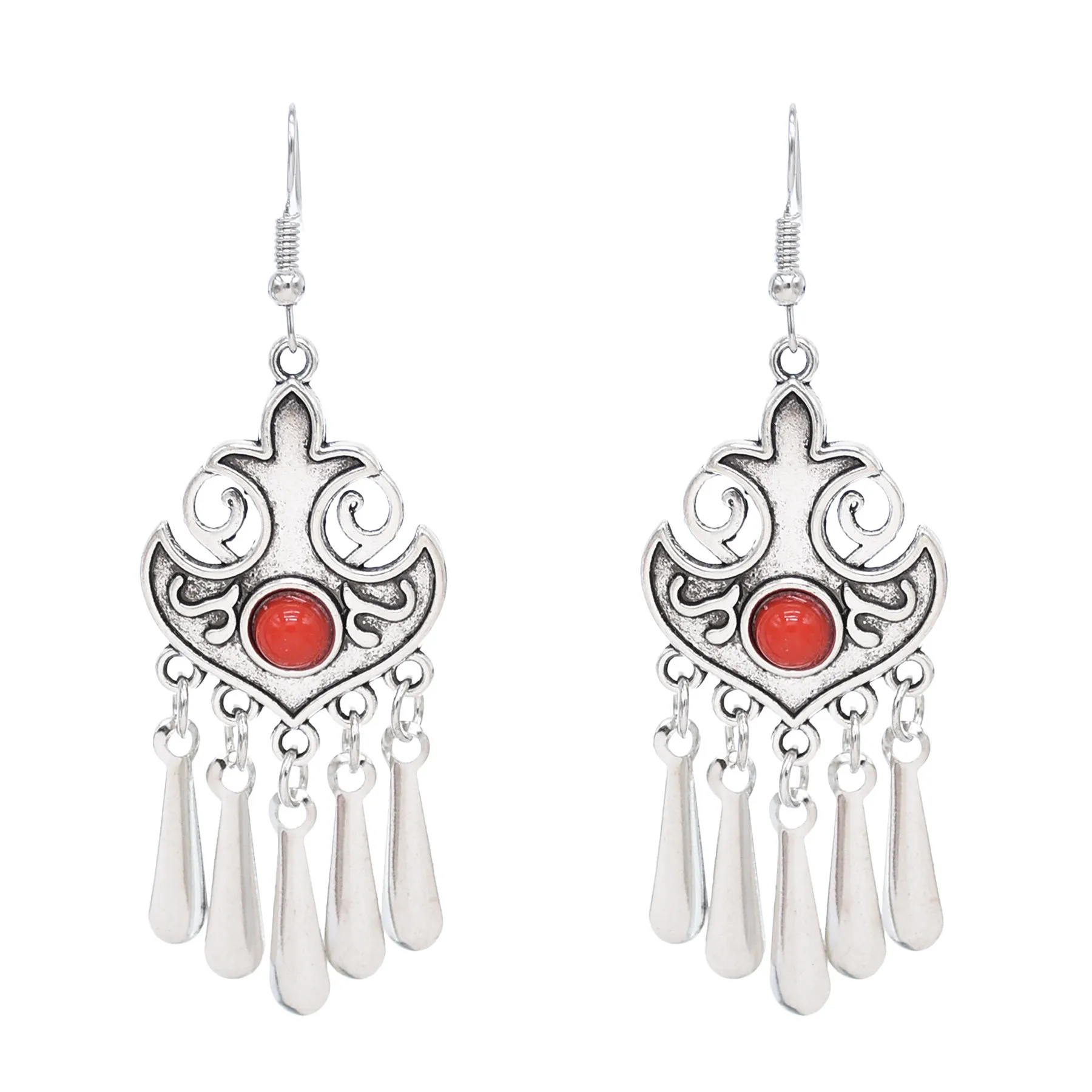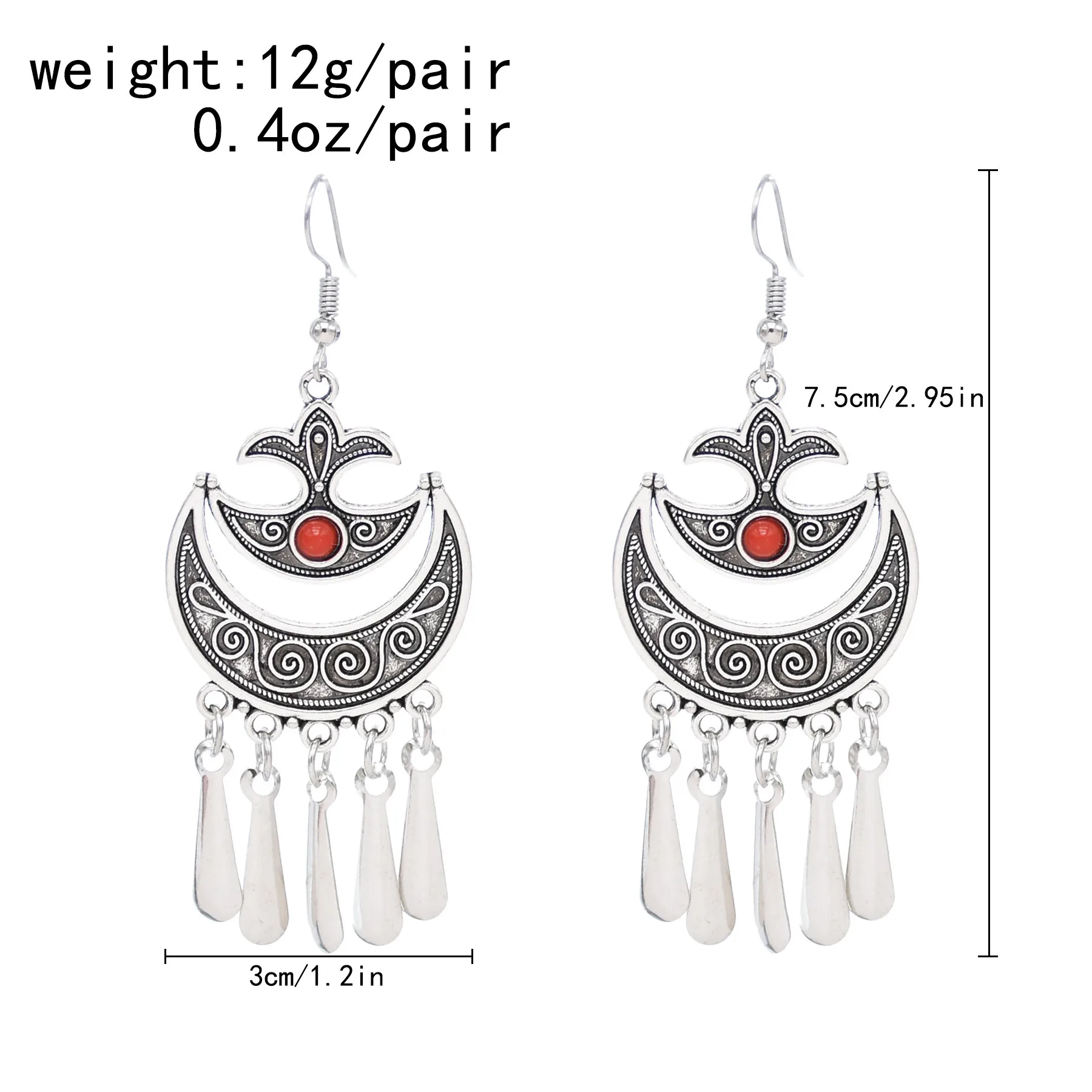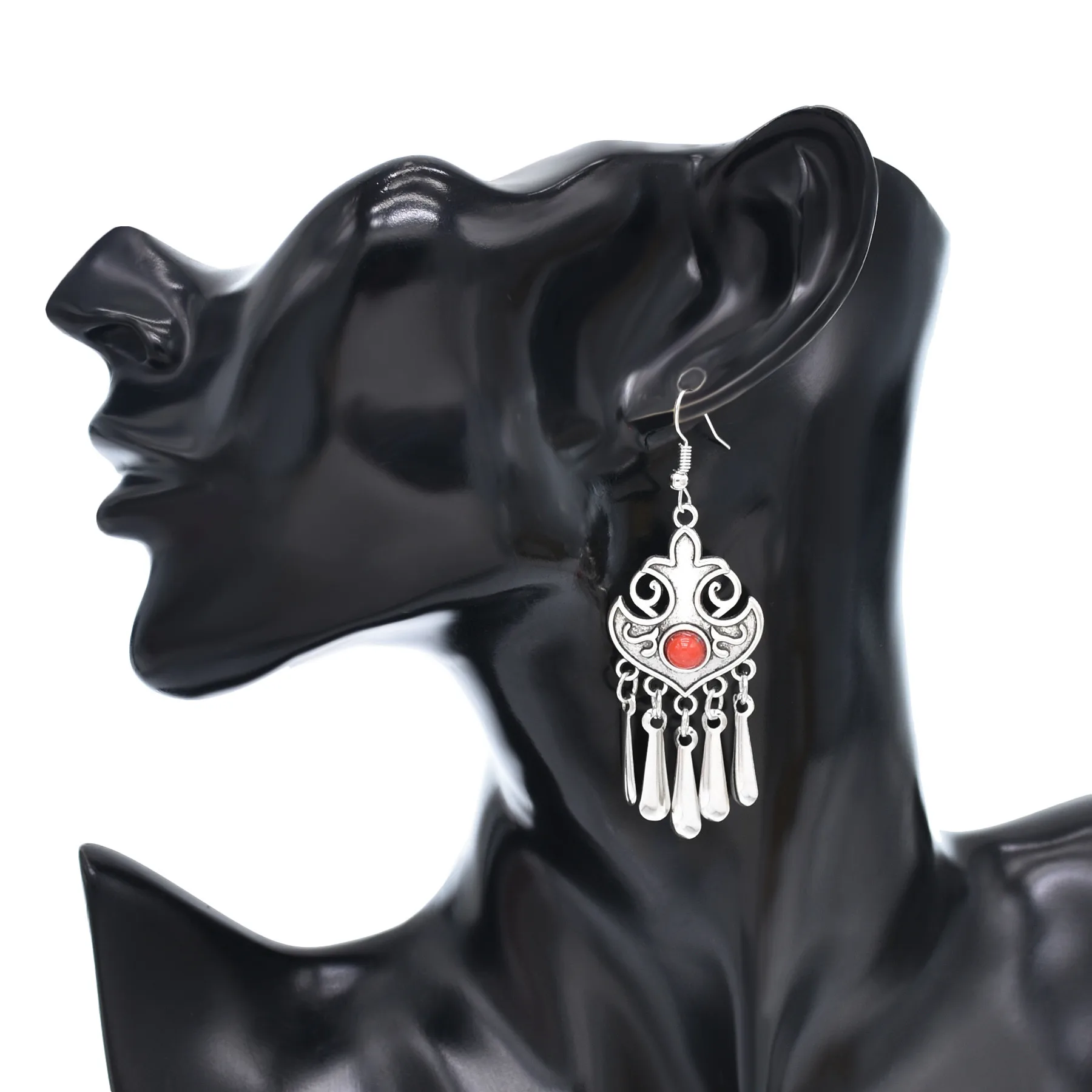 Indian Vintage Oxidized Silver Color Metal Drop Earrings for Women Boho Blue Black Stone Hanging Earrings Arab Ethnic Jewelry